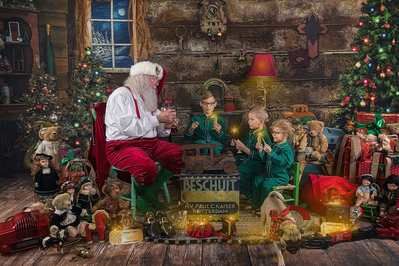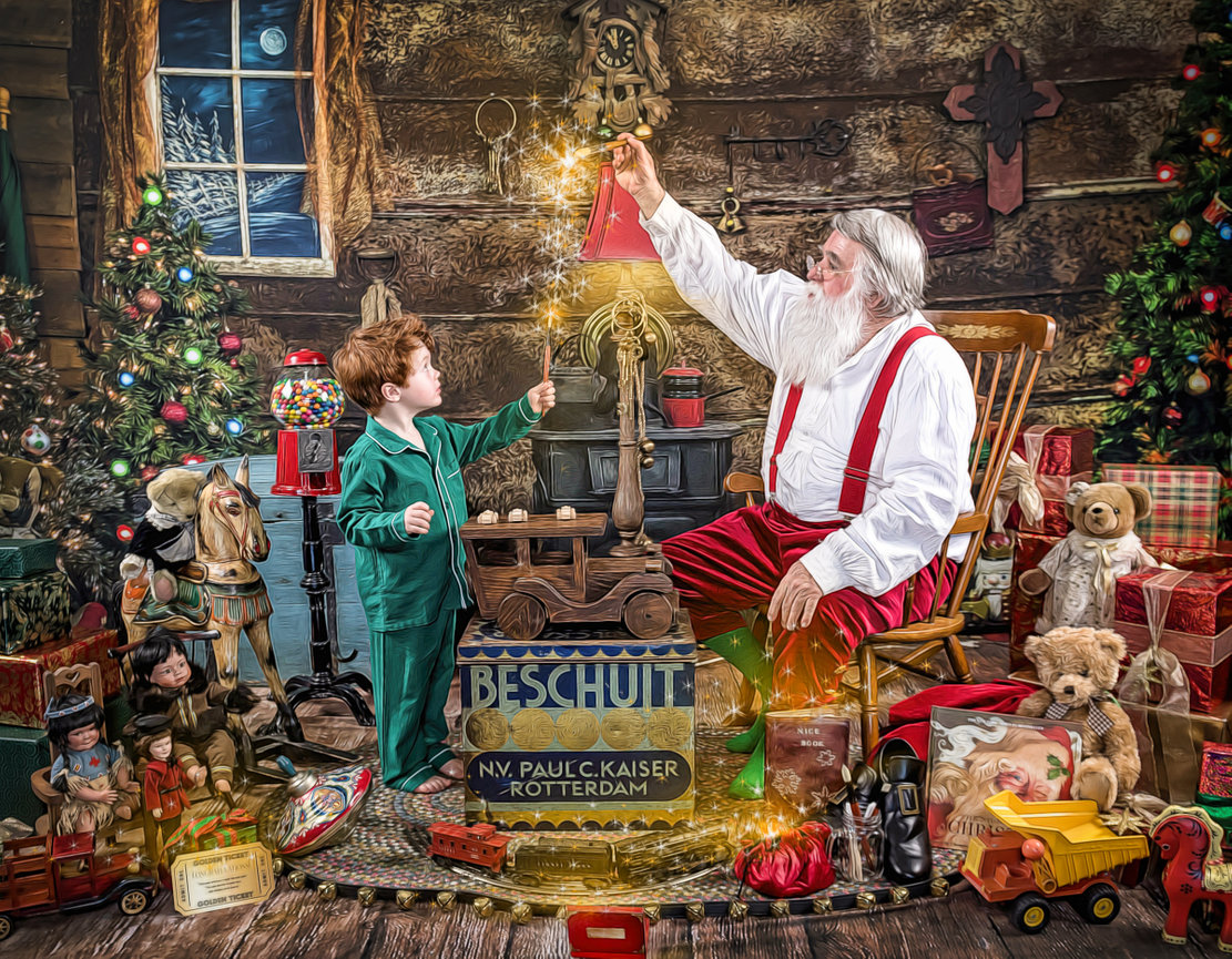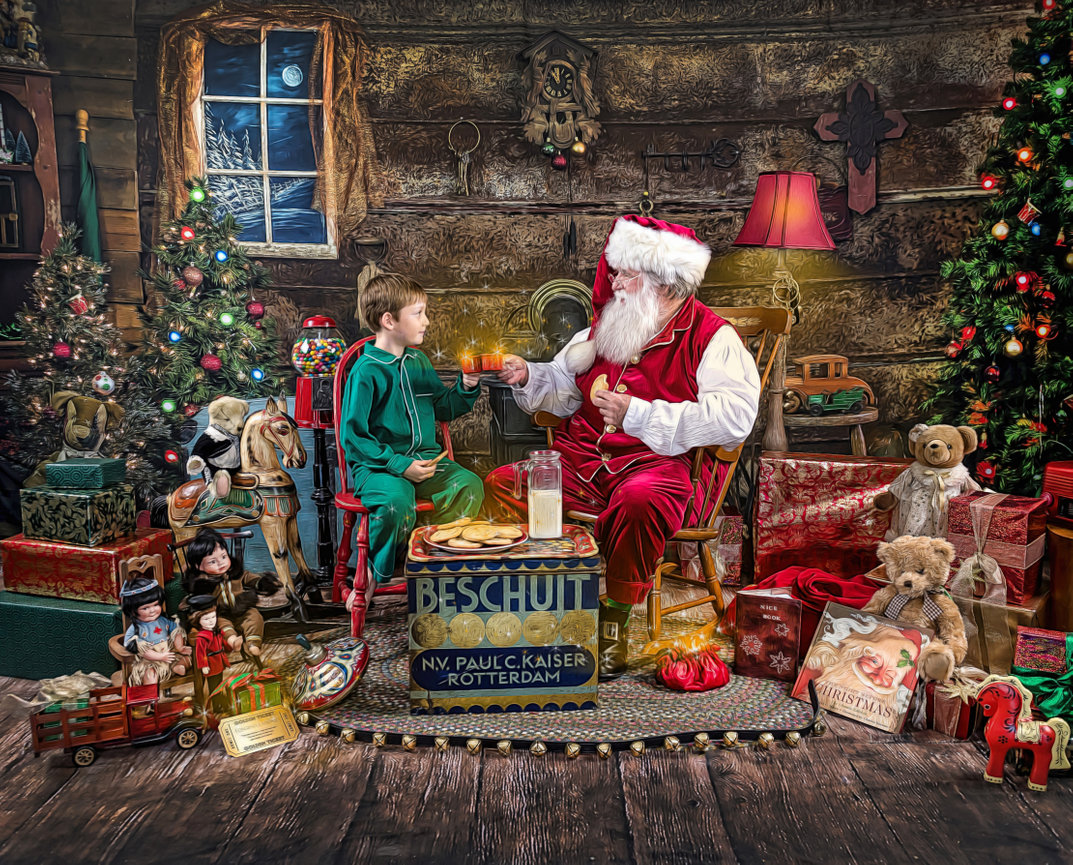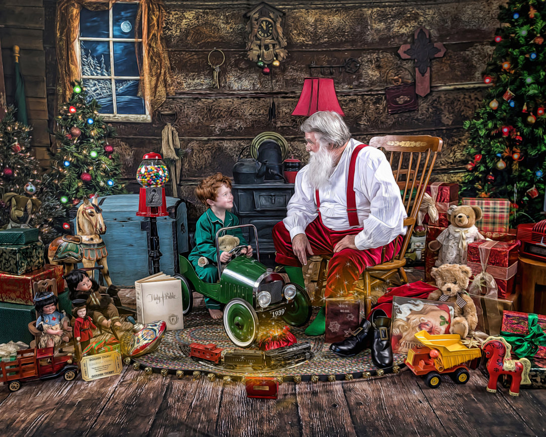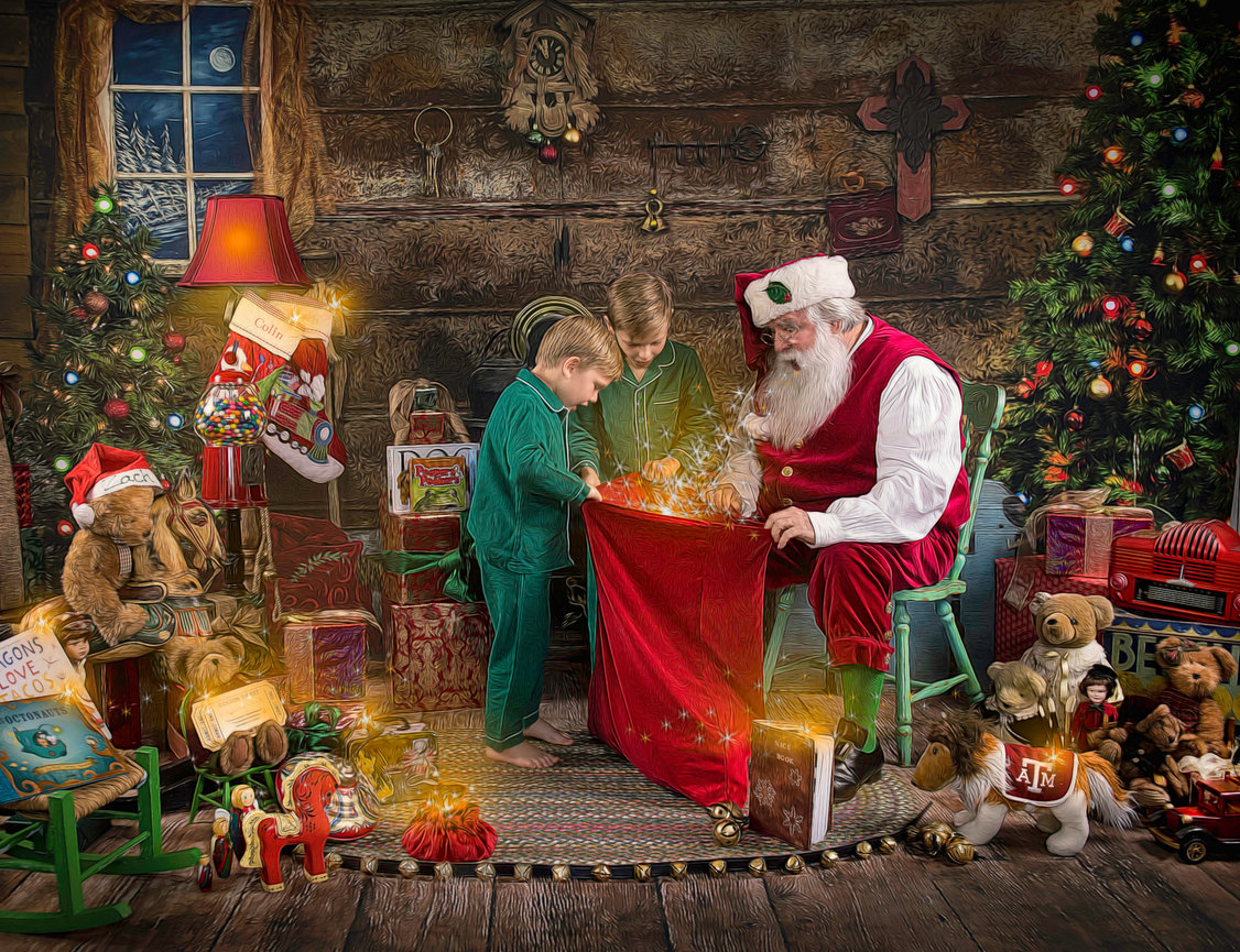 The Premiere Santa Experience is a unique opportunity for your children to spend quality time with Santa. The sessions will result in nostalgic fine art portraits featuring your children. We will create the most beautiful timeless pieces showcasing your children’s interactions with Santa. The session is comprised of a storybook progression of images which consist of finding each child's name in Santa's Nice Book, sharing milk and cookies, a phone call from Bernard the head elf, checking their wish list written in the Elf-A-Bet, looking into santa's toy bag, the Magic Box and magic dust, Santa sharing a verse from the Bible about the birth of Christ (optional), Magic Paint, and Santa showing child on the globe where he lives. Each session is approximately 40 minutes long, private, and personalized for your child. Each interaction with our professional Santa is encouraged in such a way to craft beautiful photographic moments with which to create your custom art pieces. Children of all ages are welcome, siblings alone or together. The session fee is $400 and includes the use of pjs (however you are welcome to bring your own), 40 min. storybook session and $100 credit towards cards, prints or wall portraits.